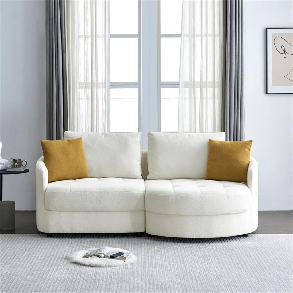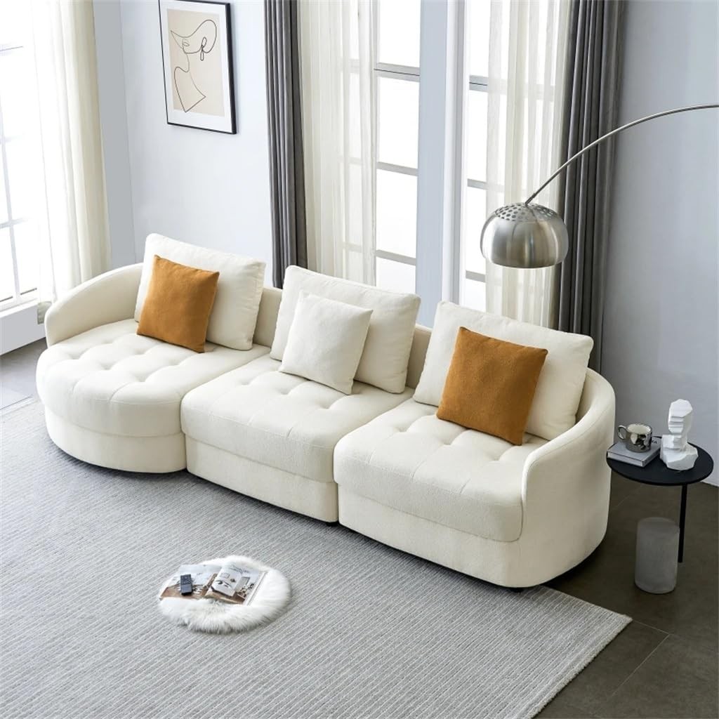 113" Teddy Fabric Sofa, Mid Century L-Shape Couch with Support Pillow for Living Room, Apartment & Office,Beige(Right)